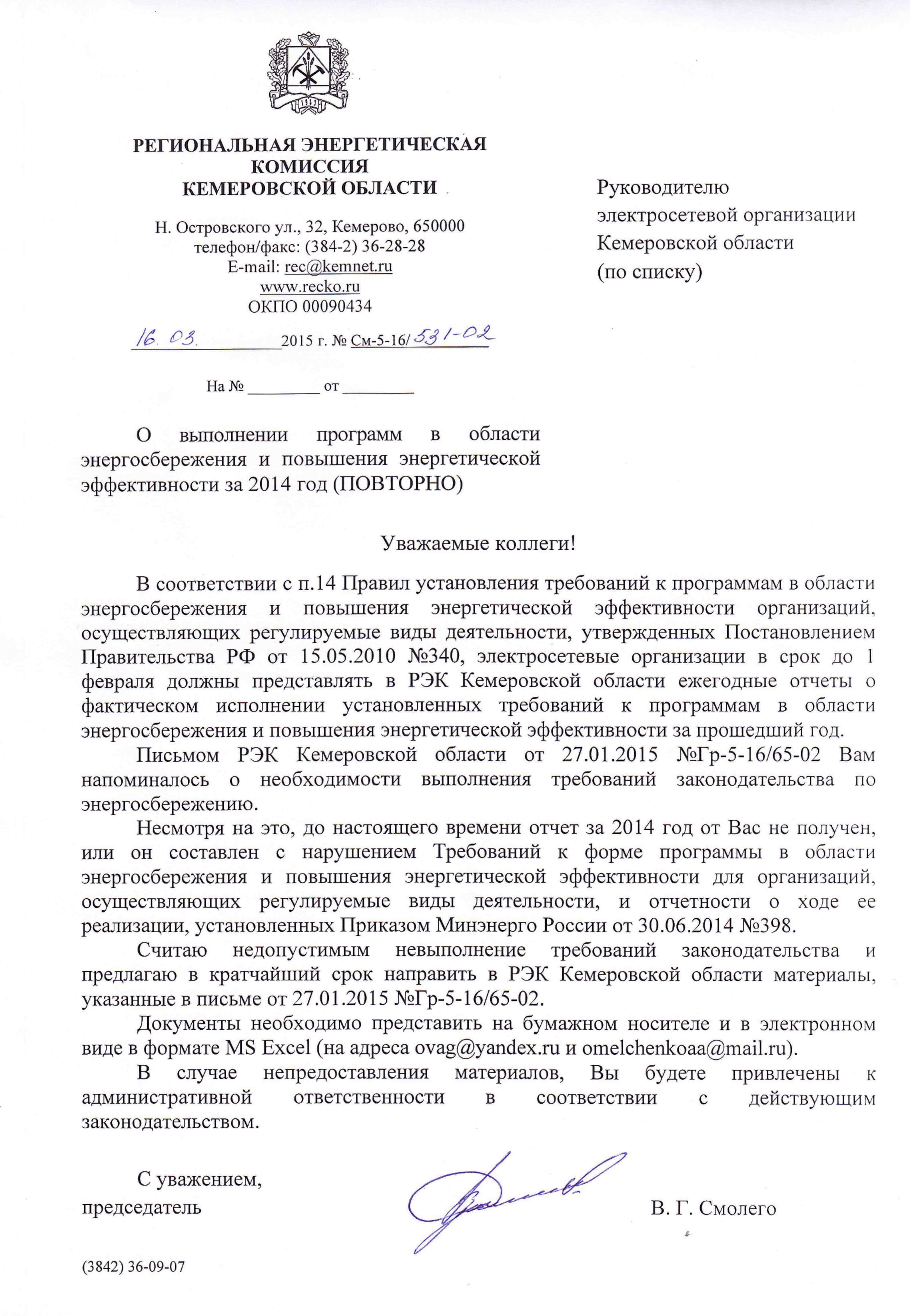 О выполнении программ в области энергосбережения и повышения энергетической эффективности за 2014 год (ПОВТОРНО)